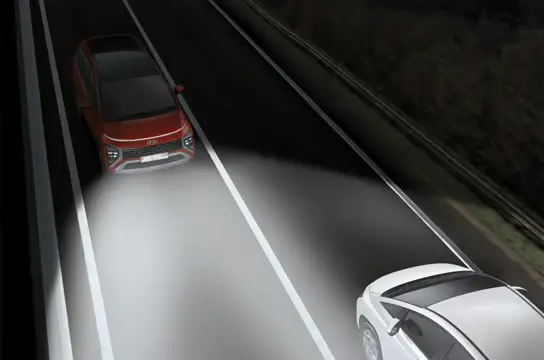 HBA mengubah kondisi lampu high beam menjadi low beam saat mendeteksi kendaraan yang melaju dari arah berlawanan pada malam hari. Saat kendaraan tersebut telah melewati mobil Anda, kondisi lampu akan berubah secara otomatis ke high beam.