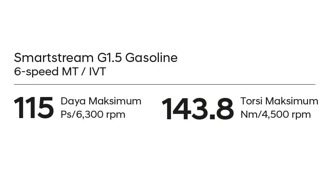 New STARGAZER dilengkapi mesin Smartstream 1.5L dengan sistem Intelligent Variable Transmission (IVT) hasilkan performa tangguh, responsif, serta efisien. Fitur Drive Mode juga tersedia untuk pilihan gaya berkendara yang paling sesuai untuk Anda