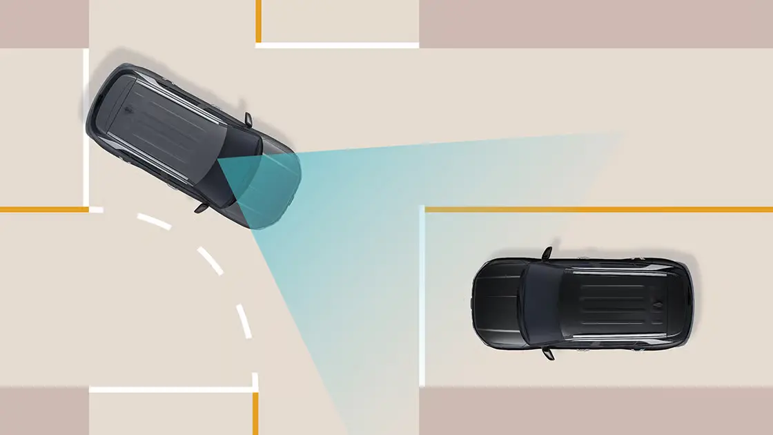 BCA memonitor blind-spot Anda saat berkendara. Jika ada kendaraan lain yang terdeteksi di sekitar mobil Anda, LED pada kaca spion akan menyala memberikan peringatan. Jika ada risiko benturan dengan kendaraan di sisi samping dalam kecepatan rendah (0 - 3km/jam), seperti misalnya saat keluar dari posisi parkir paralel, sistem akan berfungsi secara otomatis membantu pengereman darurat.