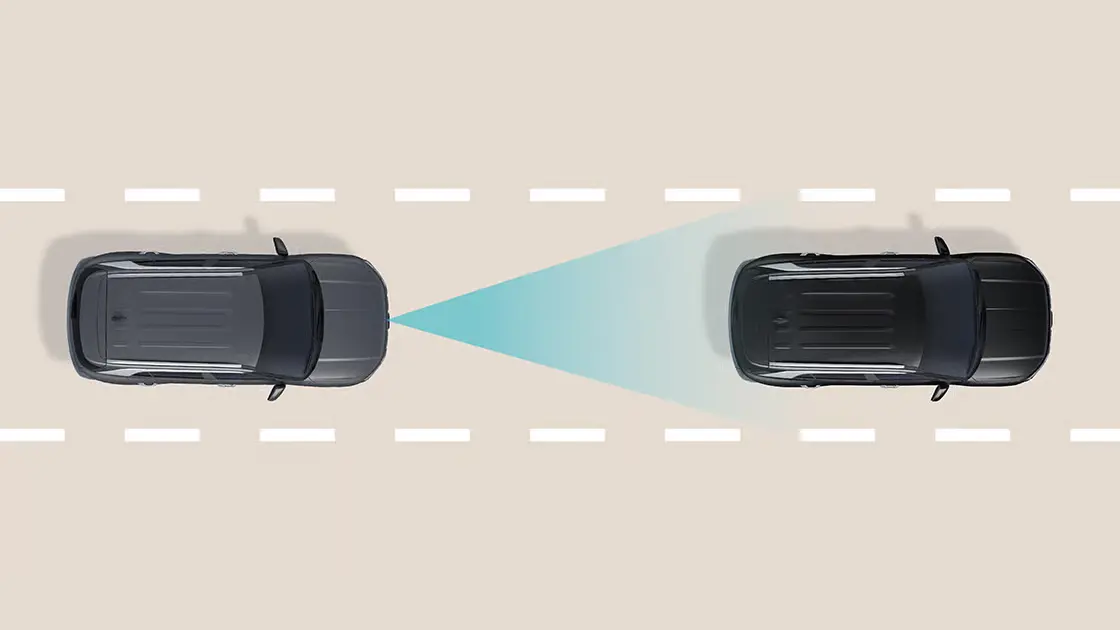 Atur kecepatan kendaraan tanpa menginjak pedal gas yang dapat menyesuaikan jarak kendaraan di depannya. Jika kendaraan di depan berhenti, mobil akan otomatis mengurangi kecepatan sampai berhenti.